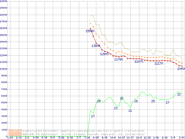Barracuda ATA IV (7200rpm,UltraATA/100 2MB 40GB/Platter,流体軸受)の最安値推移