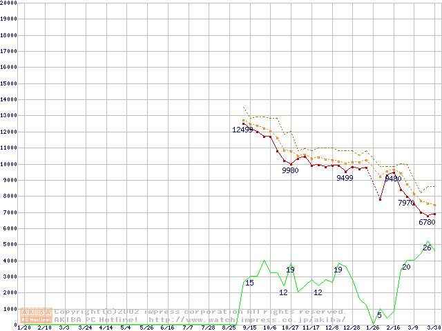 Socket A (Morgan,PGA,FSB 200MHz,L2 64KB)の最安値推移
