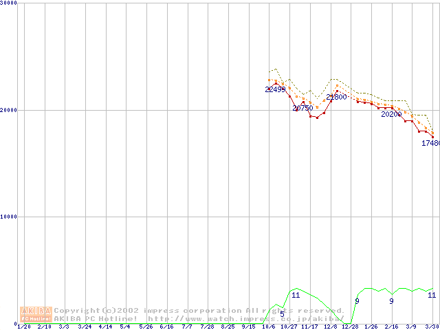 HDD主要製品(最安値1万5千円~2万円未満)の最安値推移