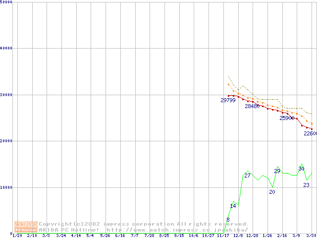 DiamondMax D540X (5400rpm,UltraATA/133,40GB/Platter)の最安値推移