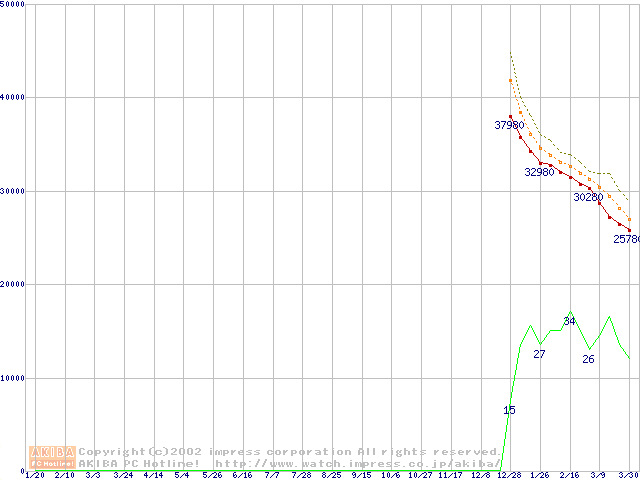 Deskstar 120GXP (7200rpm,UltraATA/100 2MB)の最安値推移