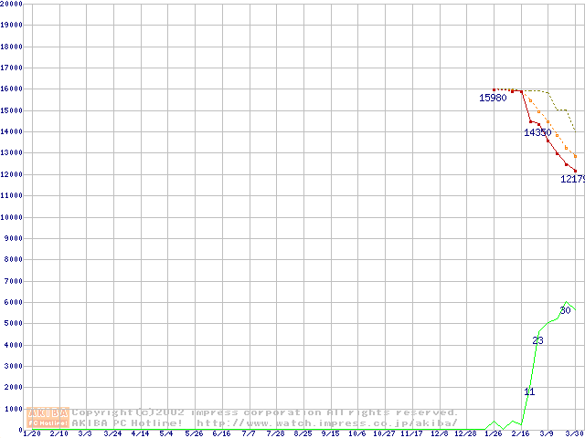 Deskstar 120GXP (7200rpm,UltraATA/100 2MB)の最安値推移