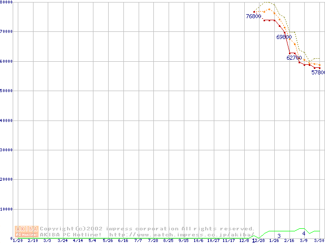 Socket 603 (micro-PGA,L2 512KB,Hyper-Threading,Prestonia)の最安値推移