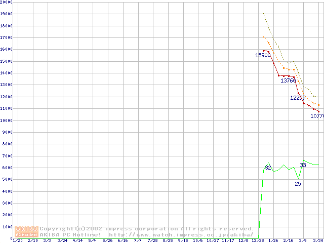 Celeron 1.30GHz FC-PGA2 リテールパッケージの価格推移