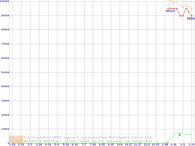 Socket 603 (micro-PGA,L2 512KB,Hyper-Threading,Prestonia)の最安値推移