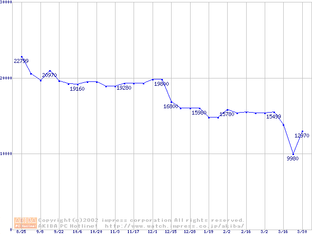 | [↓次グラフ]: | Socket A (Thunderbird,PGA,FSB 266MHz,L2 256KB)の最安値推移 |