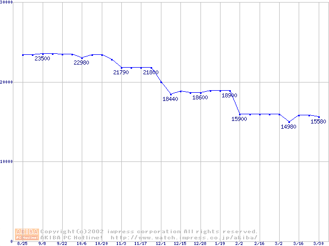 | [↑前グラフ]: | Socket 370 (FC-PGA2,FSB 133MHz,L2 256KB)の最安値推移 |