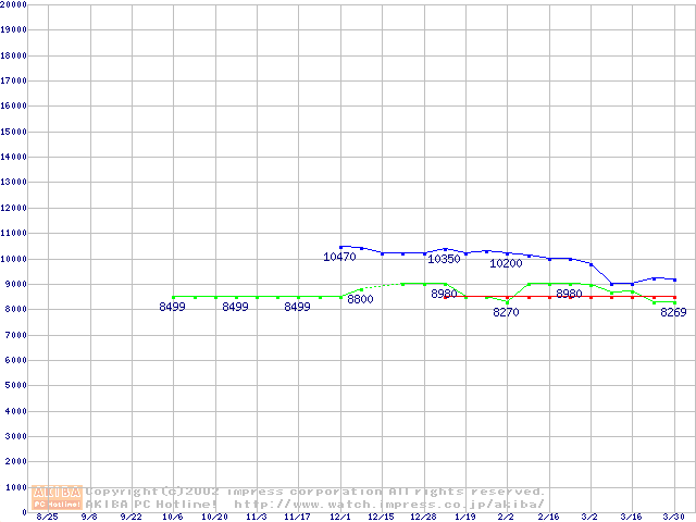 | [↑前グラフ]: | WD Caviar (5400rpm,UltraATA/100)の最安値推移 |