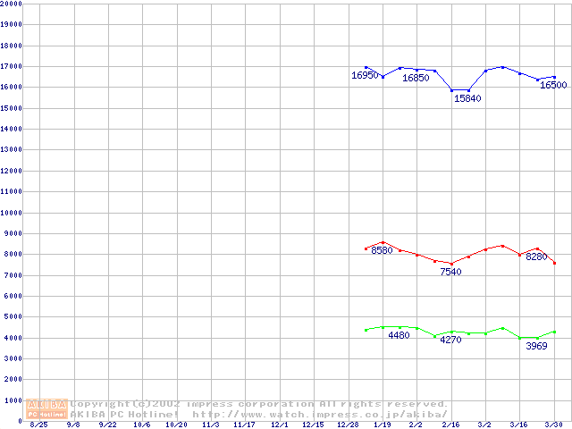 | [↓次グラフ]: | PC2700(DDR333) DDR SDRAM DIMMの最安値推移 |