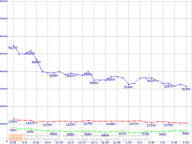 | [↑前グラフ]: | PC800 DRDRAM RIMMの最安値推移 |
