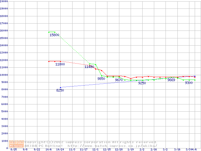 | [↑前グラフ]: | 2.5インチHDD主要製品の最安値推移 |