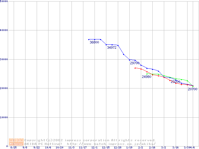 | [↓次グラフ]: | 2.5インチHDD主要製品(最安値3万円以上)の最安値推移 |