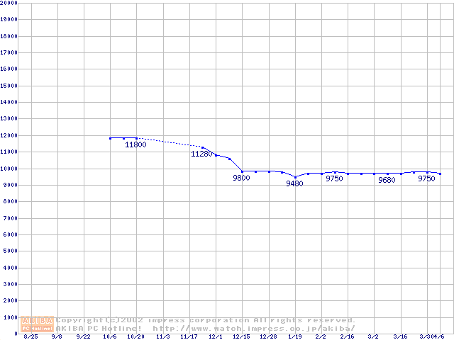 | [↓次グラフ]: | 2.5インチHDD 10GB~20GB未満(9.5mm厚)の最安値推移 |