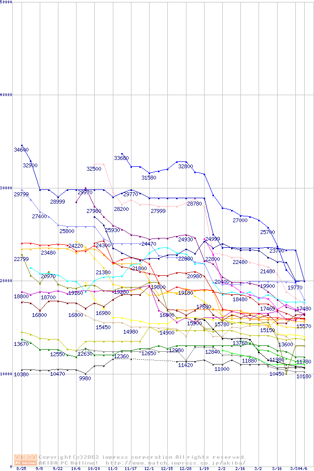 CPU主要製品(最安値1万円~2万円未満)の最安値推移