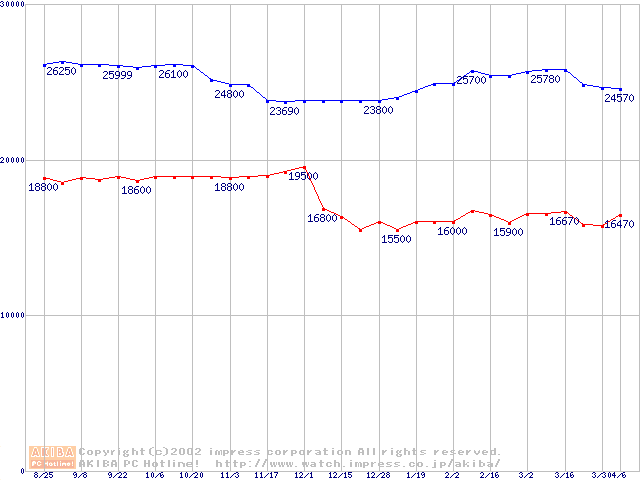 Slot 1・FSB 100MHzの最安値推移