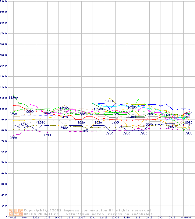 HDD主要製品の最安値推移