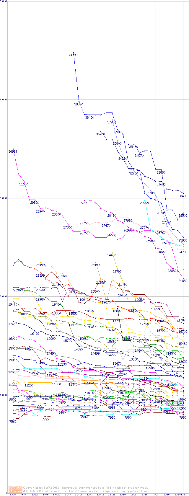 HDD主要製品の最安値推移