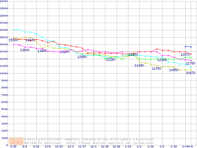 [↓次グラフ]: | HDD 80GB~100GB未満(5400rpmクラス)の最安値推移 |