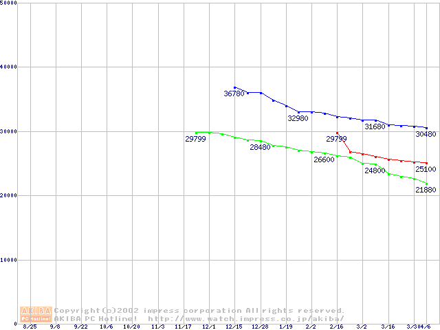 | [↓次グラフ]: | HDD 20GB~30GB未満(7200rpmクラス)の最安値推移 |