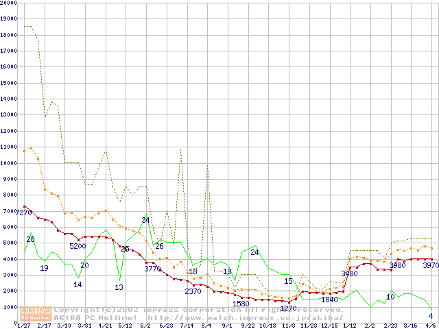 PC133 SDRAM DIMM CasLatency=2の最安値推移