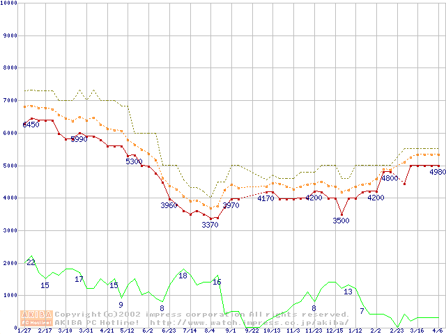 Socket A (Spitfire,PGA,FSB 200MHz,L2 64KB)の最安値推移