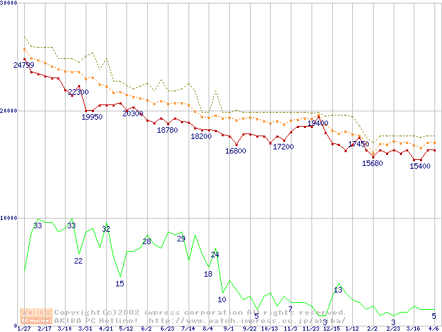 Pentium III 850MHz FC-PGA リテールパッケージの価格推移