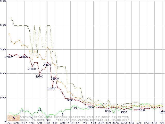 PC800 DRDRAM RIMM ECC対応の最安値推移
