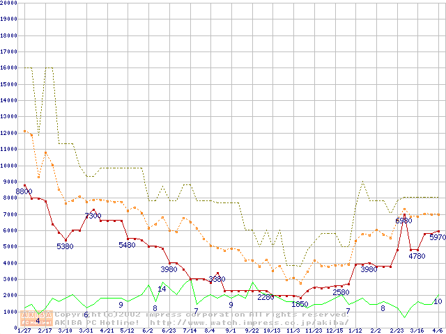 メモリ主要製品の最安値推移