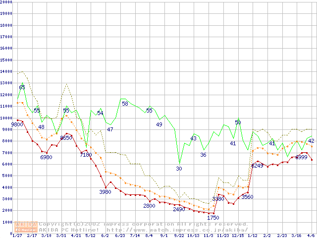 PC100 SDRAM DIMM CasLatency=2の最安値推移