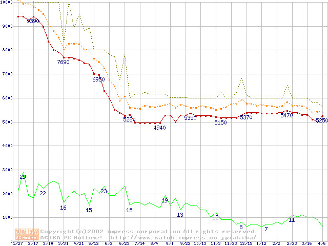 Socket A (Spitfire,PGA,FSB 200MHz,L2 64KB)の最安値推移