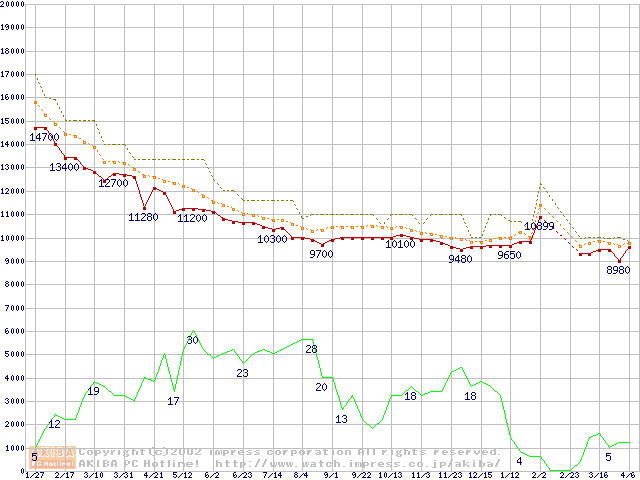 MPG3xxxAT (5400rpm,UltraATA/100)の最安値推移