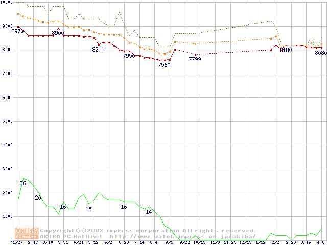 U5 (5400rpm,UltraATA/100 512KB)の最安値推移