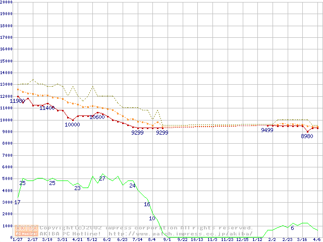 U5 (5400rpm,UltraATA/100 512KB)の最安値推移