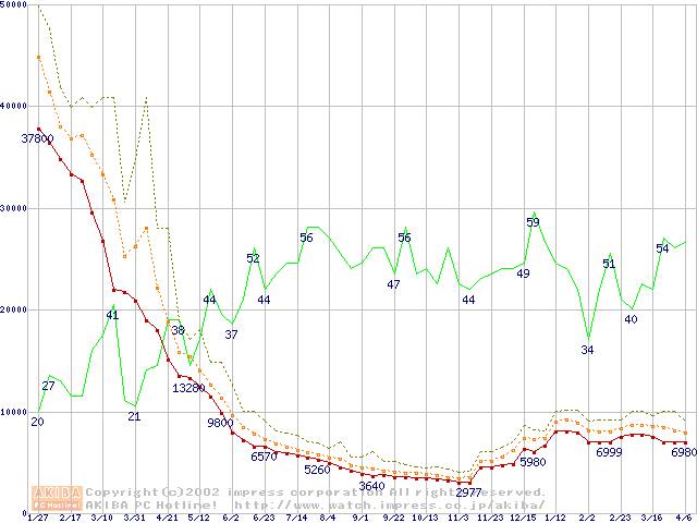 メモリ主要製品の最安値推移