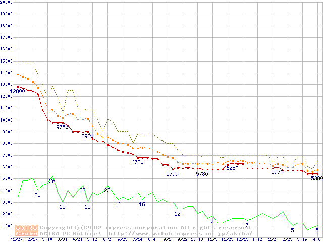 Socket A (Spitfire,PGA,FSB 200MHz,L2 64KB)の最安値推移