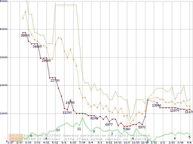 PC2100(DDR266) DDR SDRAM DIMM ECC対応の最安値推移