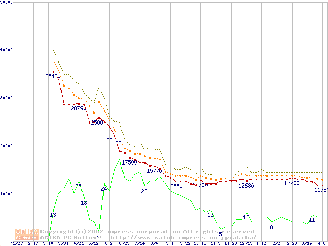 Athlon 1.33GHz(FSB266) (Thunderbird) バルクの価格推移