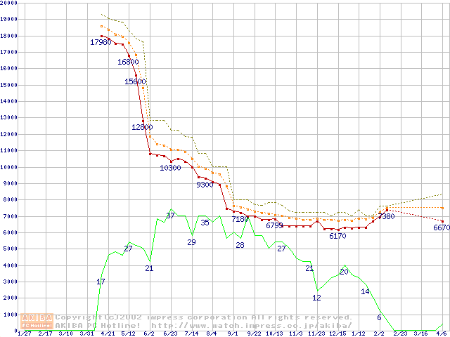 Celeron 850MHz FC-PGA リテールパッケージの価格推移
