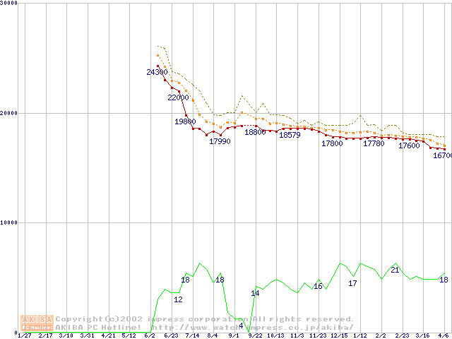 WD Caviar (5400rpm,UltraATA/100)の最安値推移