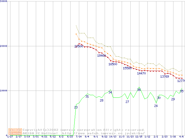 Barracuda ATA IV (7200rpm,UltraATA/100 2MB 40GB/Platter,流体軸受)の最安値推移