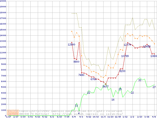 PC2100(DDR266) DDR SDRAM DIMM ECC対応 Registeredタイプの最安値推移