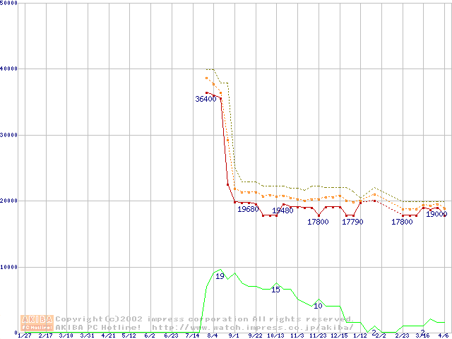 Pentium 4 1.60GHz(423pin)リテールパッケージ(RIMMなし)の価格推移