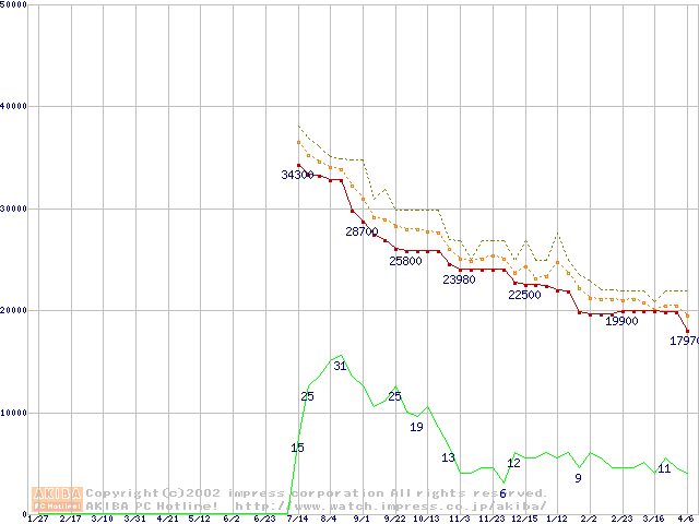 Pentium III 1.13AGHz FC-PGA2 リテールパッケージの価格推移