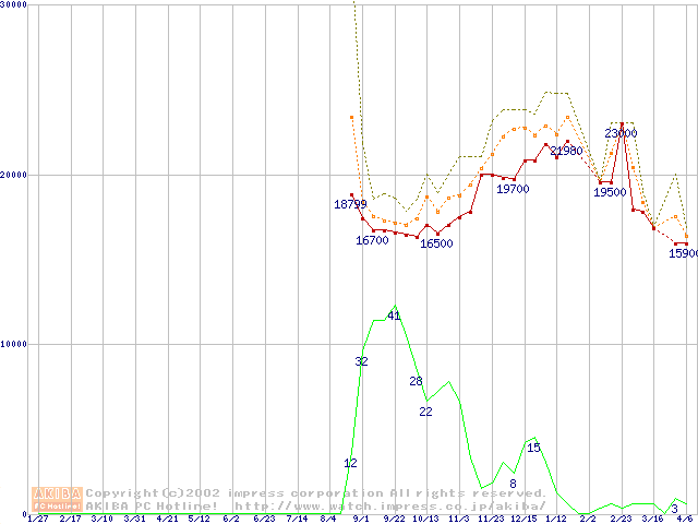 Socket 478 (micro-PGA,L2 256KB,Willamette)の最安値推移