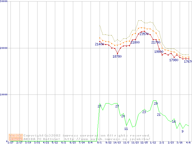 Socket 478 (micro-PGA,L2 256KB,Willamette)の最安値推移