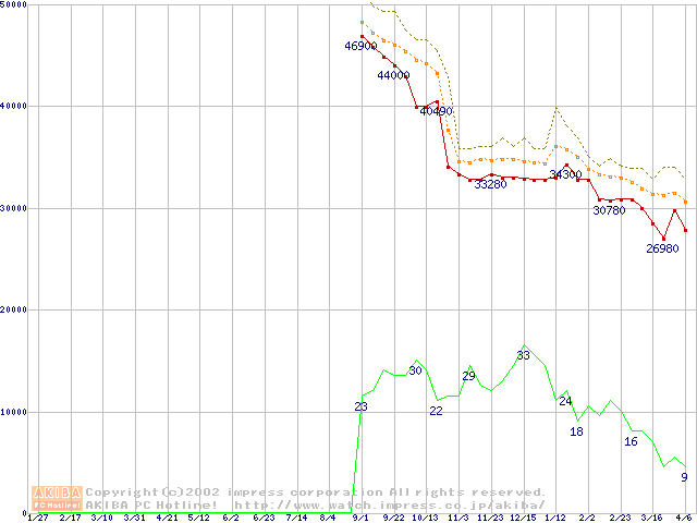 Socket 478 (micro-PGA,L2 256KB,Willamette)の最安値推移