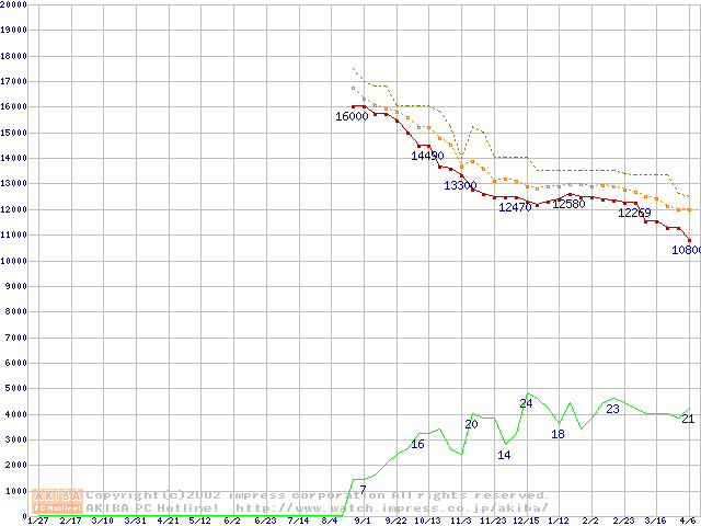 DiamondMax D540X (5400rpm,UltraATA/100,40GB/Platter)の最安値推移