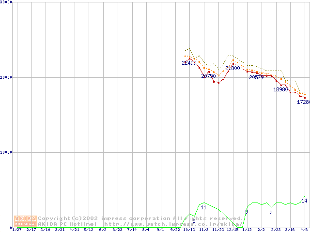 U6 (5400rpm,UltraATA/100 2MB 40GB/Platter,流体軸受)の最安値推移