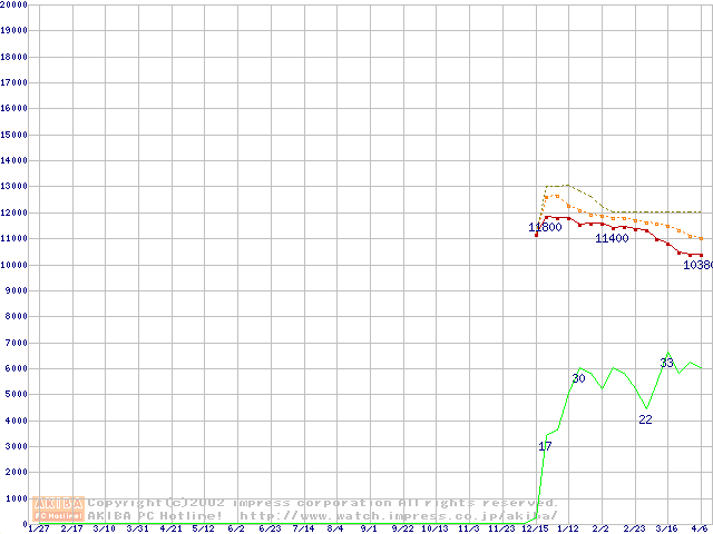 DiamondMax Plus D740X (7200rpm,UltraATA/133,40GB/Platter,流体軸受)の最安値推移
