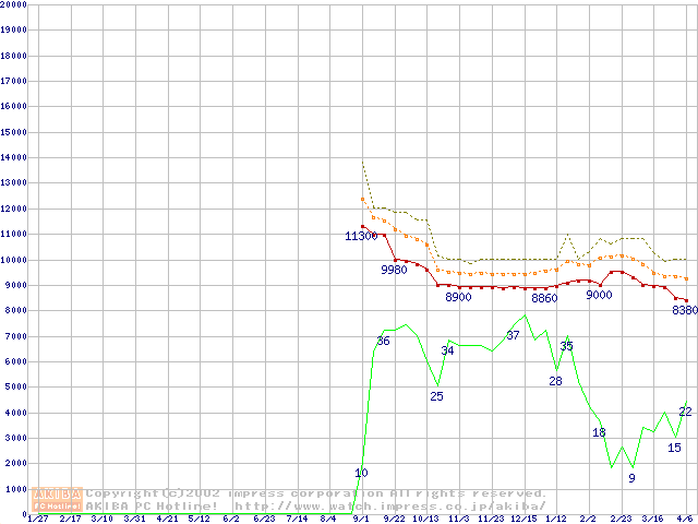 Celeron 1GHz FC-PGA リテールパッケージの価格推移